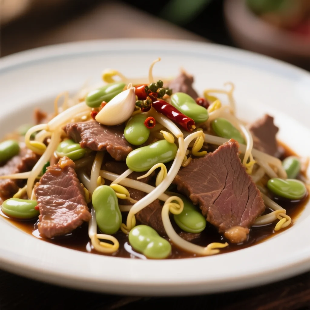 Dieses klassische chinesische Pfannengericht vereint den fleischigen Reichtum von Rindfleisch mit der leichten, knusprigen Textur von Mungobohnensprossen. Der Schlüssel ist hohe Hitze und schnelles Garen, um die Sprossen knusprig und das Rindfleisch zart zu halten.