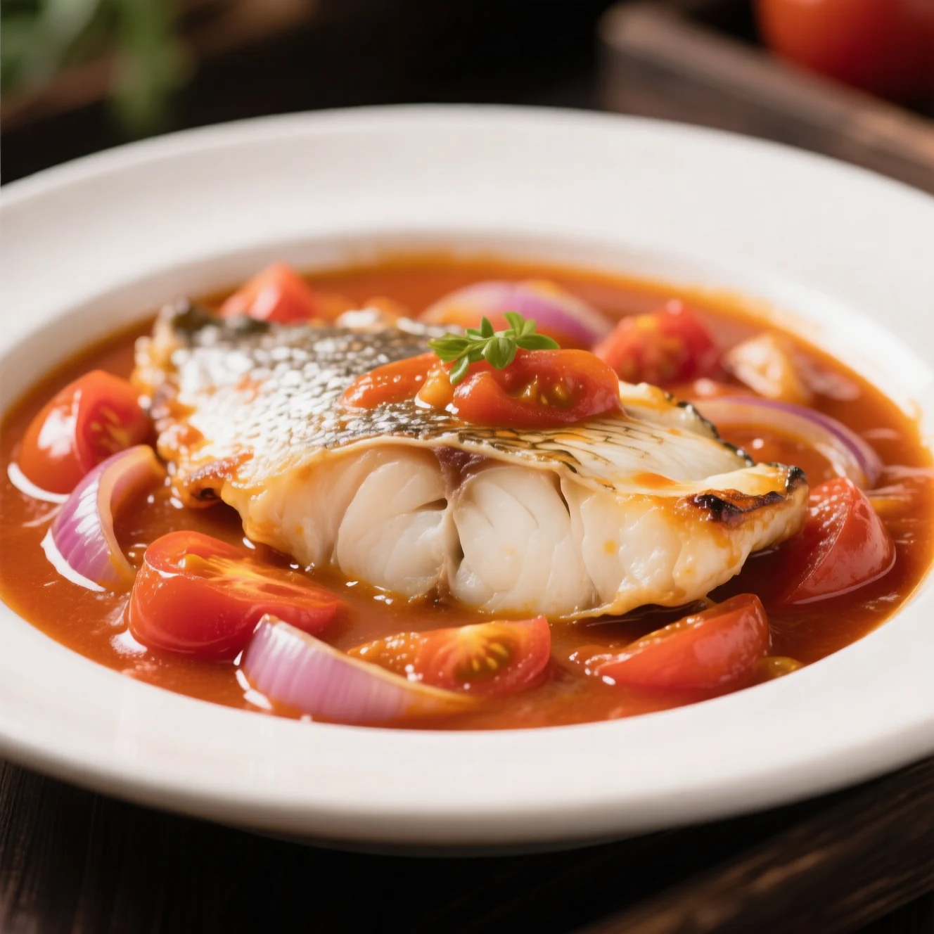 Flétan au four avec ragoût de tomates savoureux