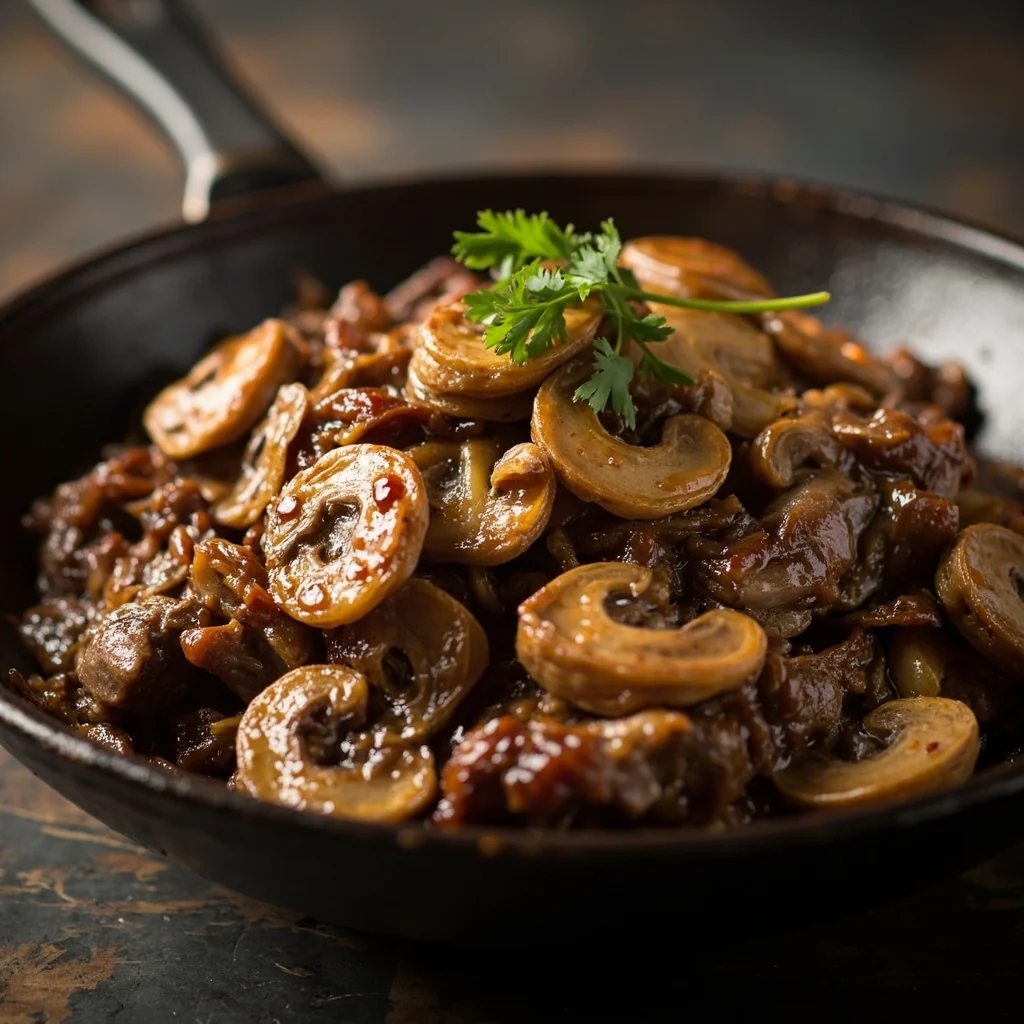 Des tranches de bœuf soyeuses rencontrent des champignons charnus dans ce dîner rapide au wok. Un traitement tendre au bicarbonate de soude crée cette texture veloutée caractéristique, tandis qu'une cuisson à feu vif saisit le tout avec une profondeur savoureuse.