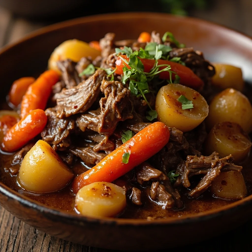 Ajouter les pommes de terre et les carottes dans la casserole. Continuer à braiser, couvert, pendant encore 25-30 minutes jusqu'à ce que les légumes soient tendres et que la sauce ait épaissi. Remuer de temps en temps pour éviter que cela n'attache.