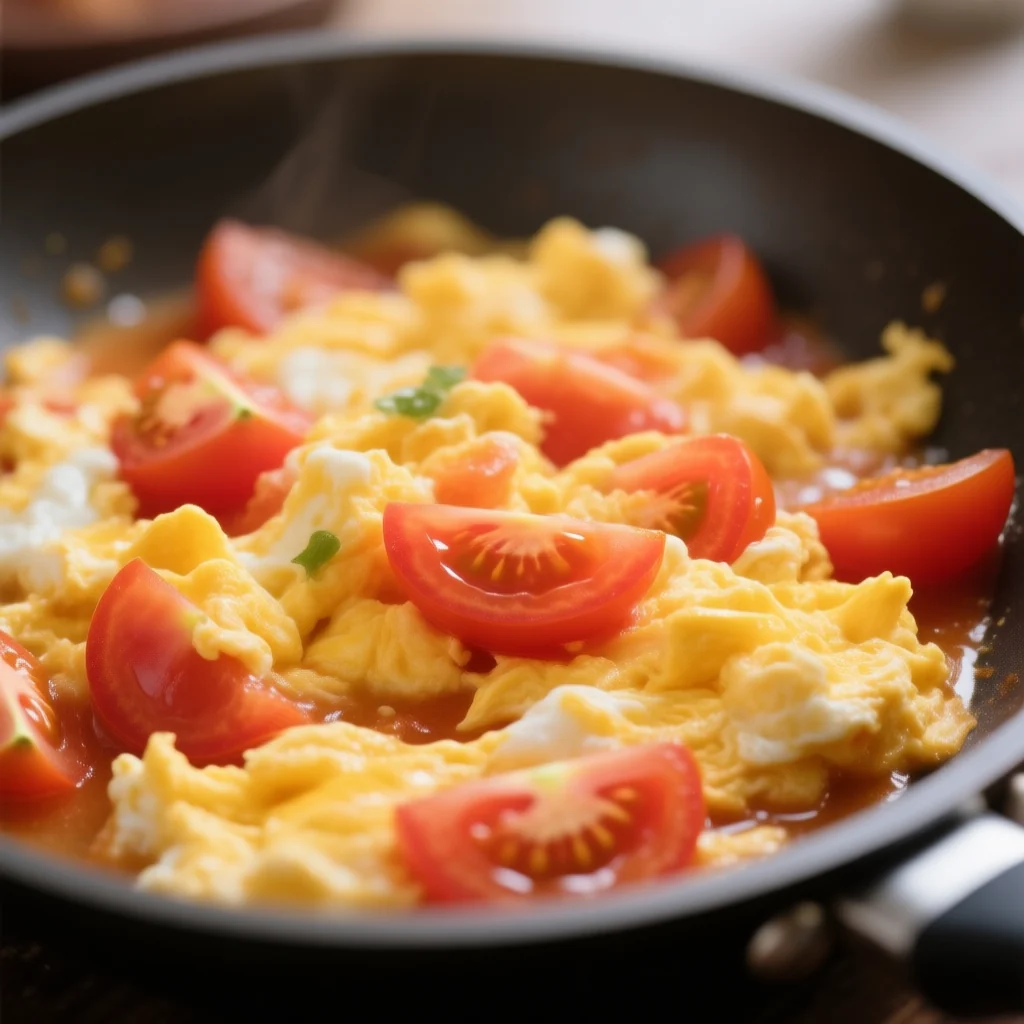 Un sauté rapide et réconfortant d'œufs brouillés moelleux avec des tomates juteuses et tendres. Ce plat familial se prépare en quelques minutes et offre des saveurs vives et savoureuses parfaites pour n'importe quel repas.