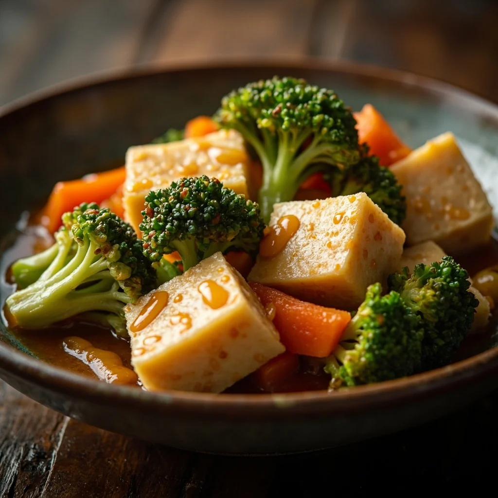 Chauffer l'huile végétale dans un wok ou une grande poêle à feu moyen-vif. Ajouter les morceaux de tofu pressés et faire frire jusqu'à ce qu'ils soient dorés sur plusieurs côtés, environ 4-5 minutes. Retirer et réserver.