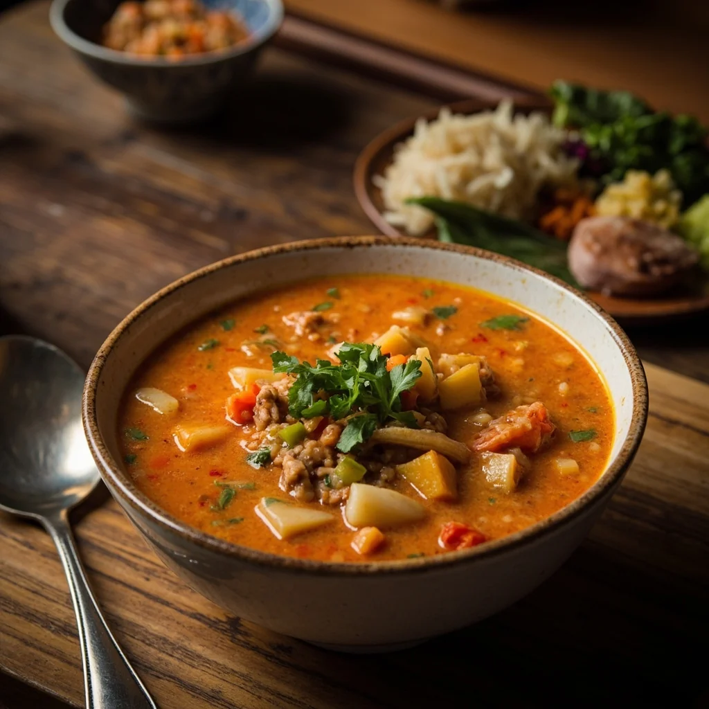 Versez le bouillon et l'eau. Portez à ébullition, puis réduisez le feu et laissez mijoter pendant 30-35 minutes jusqu'à ce que les lentilles soient complètement décomposées et que les légumes soient tendres.