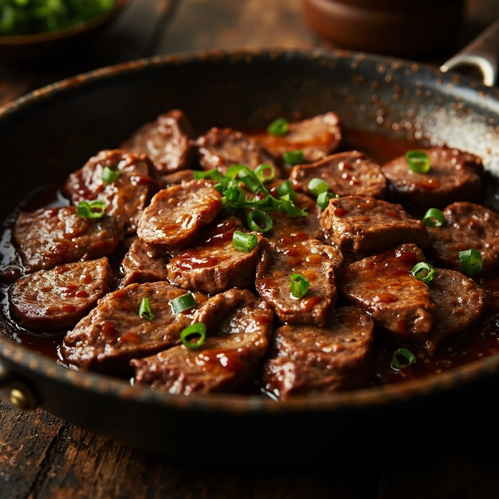 Tranches de bœuf tendres marinées dans une sauce savoureuse, puis rapidement saisies pour un steak juteux, digne d'un restaurant, à la maison. La technique du martelage assure une tendreté maximale.