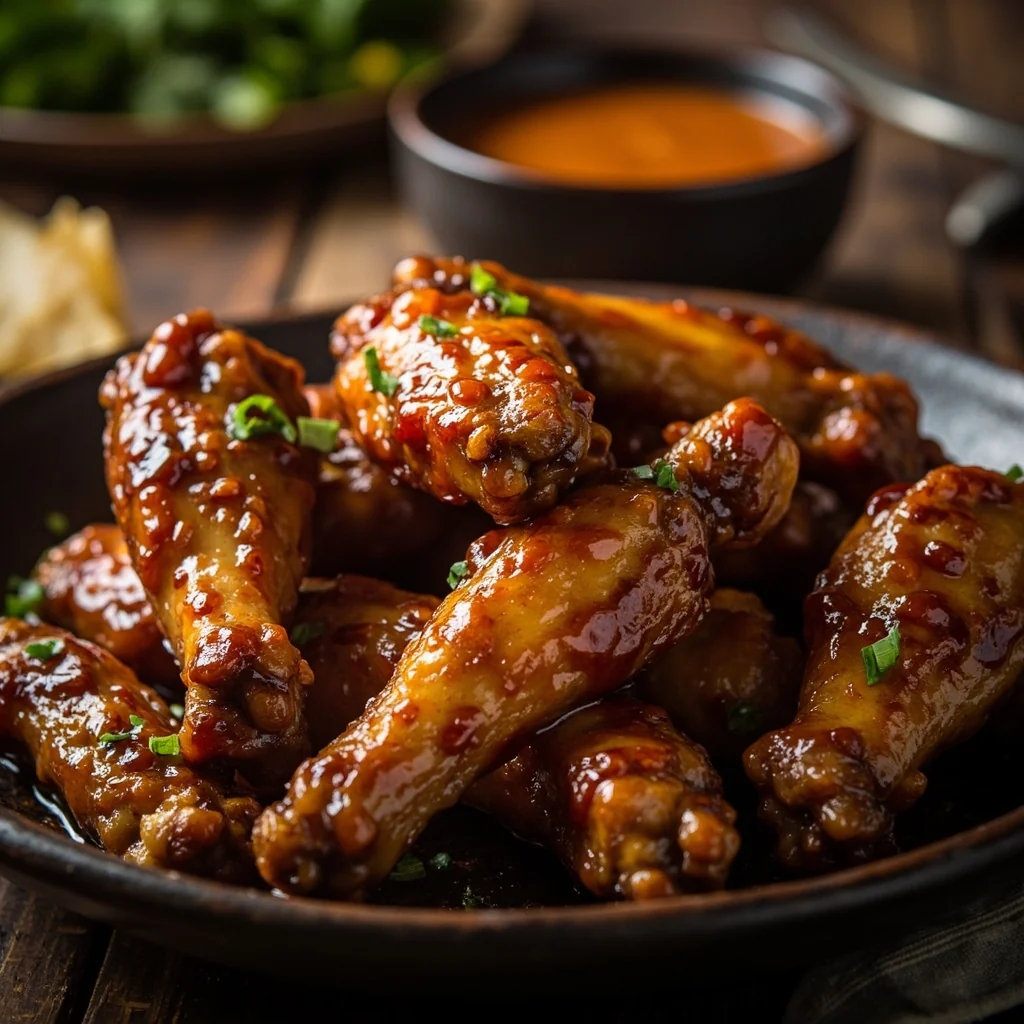 Préchauffez votre four à 200°C (400°F). Tapissez une plaque de cuisson de papier aluminium et badigeonnez légèrement d'huile végétale. Disposez les ailes marinées en une seule couche, en laissant un peu d'espace entre elles. Versez le reste de la marinade dans une petite casserole et laissez mijoter pendant 2 minutes pour faire un glaçage.
