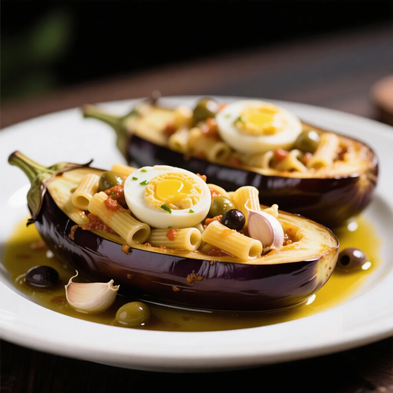 Ce plat transforme une simple aubergine en un délicieux contenant pour les pâtes. En rôtissant les coques et en les garnissant d'un mélange parfumé à l'ail, vous obtenez un repas satisfaisant qui impressionne visuellement.