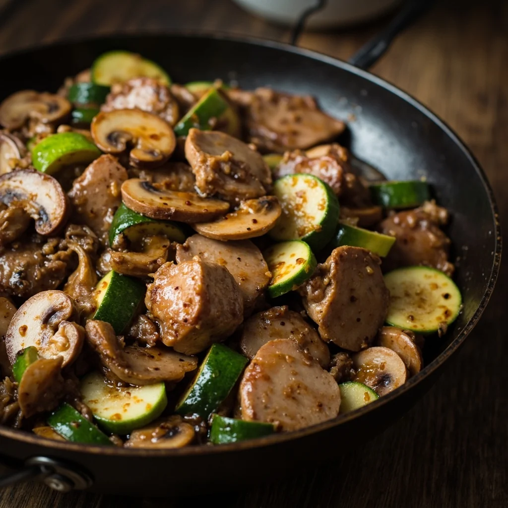 Ce sauté simple met en valeur l'harmonie entre le porc savoureux, les champignons riches en umami et la courgette douce. Parfait pour un dîner rapide quand vous voulez quelque chose de savoureux mais pas compliqué.