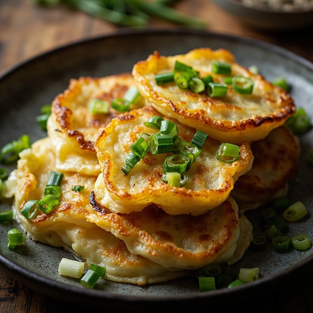 Des crêpes aux bords croustillants et au centre moelleux qui transforment l'humble okara (la pulpe nutritive restante après la fabrication du tofu) en quelque chose de véritablement délicieux. Les œufs et la ciboulette lient le tout ensemble, tandis que les crevettes séchées apportent une profondeur savoureuse subtile.