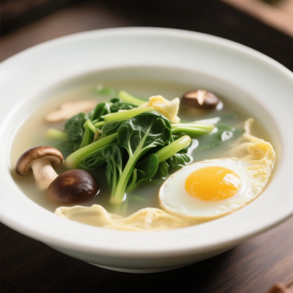 Cette soupe traditionnelle met en valeur la bourse-à-pasteur, une herbe sauvage appréciée dans la cuisine chinoise pour sa saveur délicate et ses bienfaits nutritionnels. L'empois d'amidon donne au bouillon une texture soyeuse, tandis que les œufs versés lentement créent de beaux rubans dans l'ensemble.
