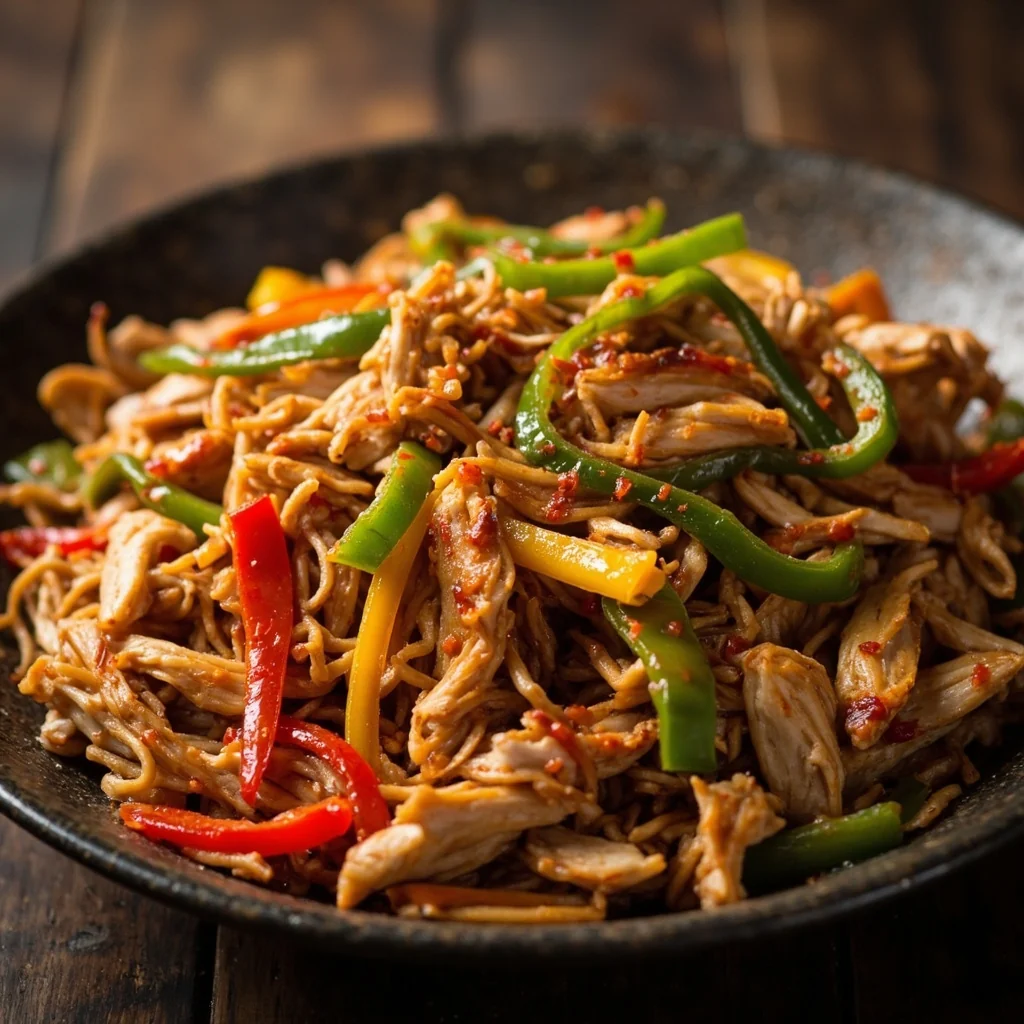 Un sauté chinois rapide et savoureux mettant en vedette des lanières de blanc de poulet tendres mélangées à des poivrons colorés et des assaisonnements aromatiques. Prêt en moins de 20 minutes, ce plat offre une touche piquante satisfaisante à chaque bouchée.