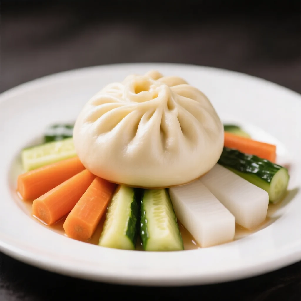Transformez une simple brioche à la vapeur en un adorable crabe en ajoutant des pinces et des pattes de carotte, des yeux de radis, et une scène environnante de plantes aquatiques de concombre et de poissons. Cet agencement ludique apporte une touche joyeuse à la table, rendant le repas amusant et accueillant pour les petits.
