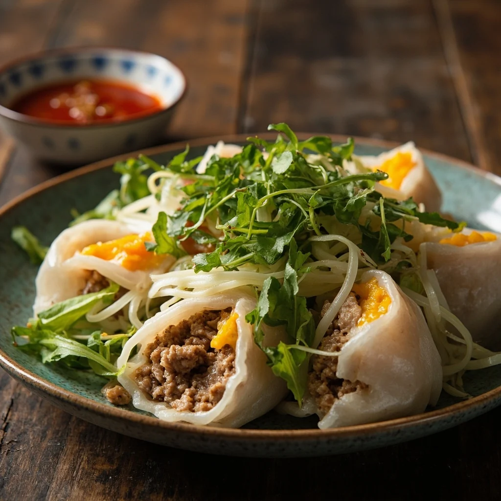 Cette méthode simplifiée utilise des feuilles de nouilles de riz fraîches étendues à plat, farcies, puis soigneusement roulées avant une courte cuisson à la vapeur. Le résultat est tendre, réconfortant, et parfait pour un repas rapide style dim sum à la maison.