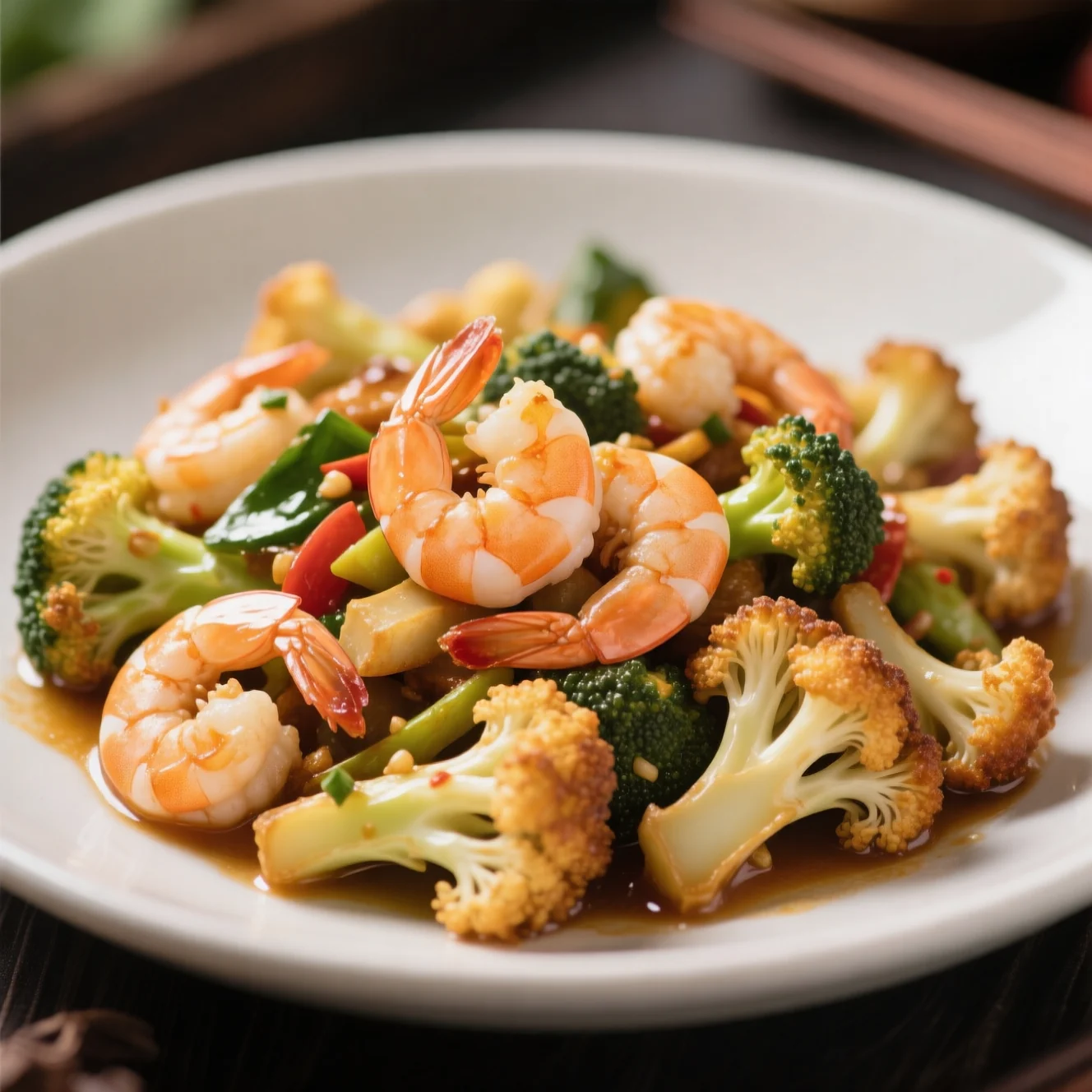 Ce plat combine la texture délicate des crevettes avec le croquant du chou-fleur. C'est un incontournable dans de nombreux foyers chinois en raison de sa simplicité et de son équilibre nutritionnel.