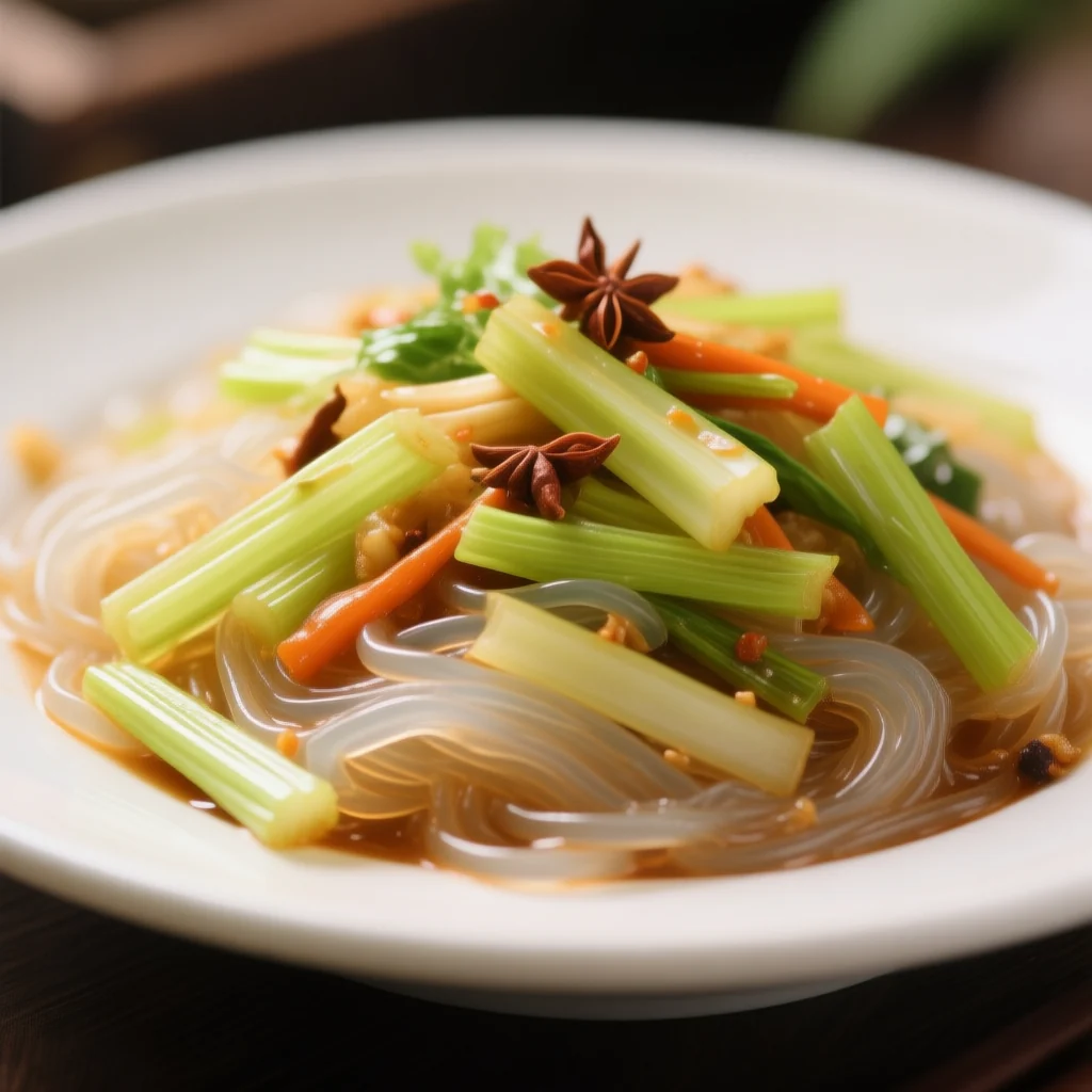 Un plat végétarien léger mais aromatique alliant le croquant du céleri et la douceur des nouilles de verre, relevé d'épices chaudes. Les nouilles absorbent toutes les saveurs parfumées tout en conservant une texture agréable.