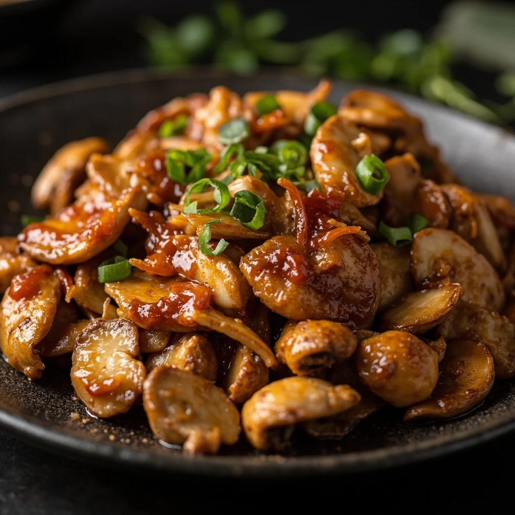 Les pleurotes du Roi ont une texture charnue satisfaisante qui supporte parfaitement la cuisson à feu vif. L'astuce est de faire fondre votre wok et de tout garder en mouvement—cela garantit que le poulet reste juteux tout en devenant nicely caramelisé sur les bords.