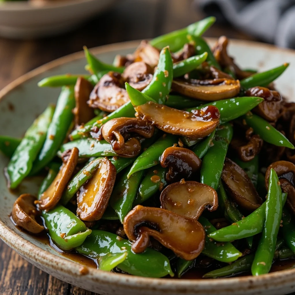 Un plat rapide et vibrant inspiré de la cuisine chinoise, associant des pois monges croquants à des shiitake terreux dans une sauce soja savoureuse.