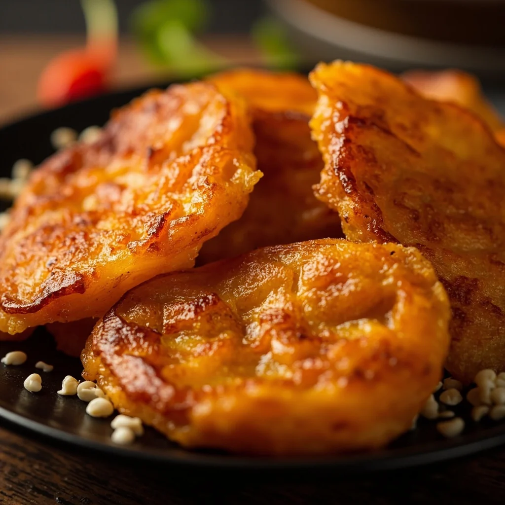 Des bâtons de patate douce dorés enveloppés dans une pâte fines comme un murmure, frits à la poêle jusqu'à obtenir une croûte thérapeutiquement croustillante à l'extérieur et délicieusement tendre à l'intérieur. Un incontournables de la rue qui prouve que des ingrédients simples créent les snacks les plus addictifs.