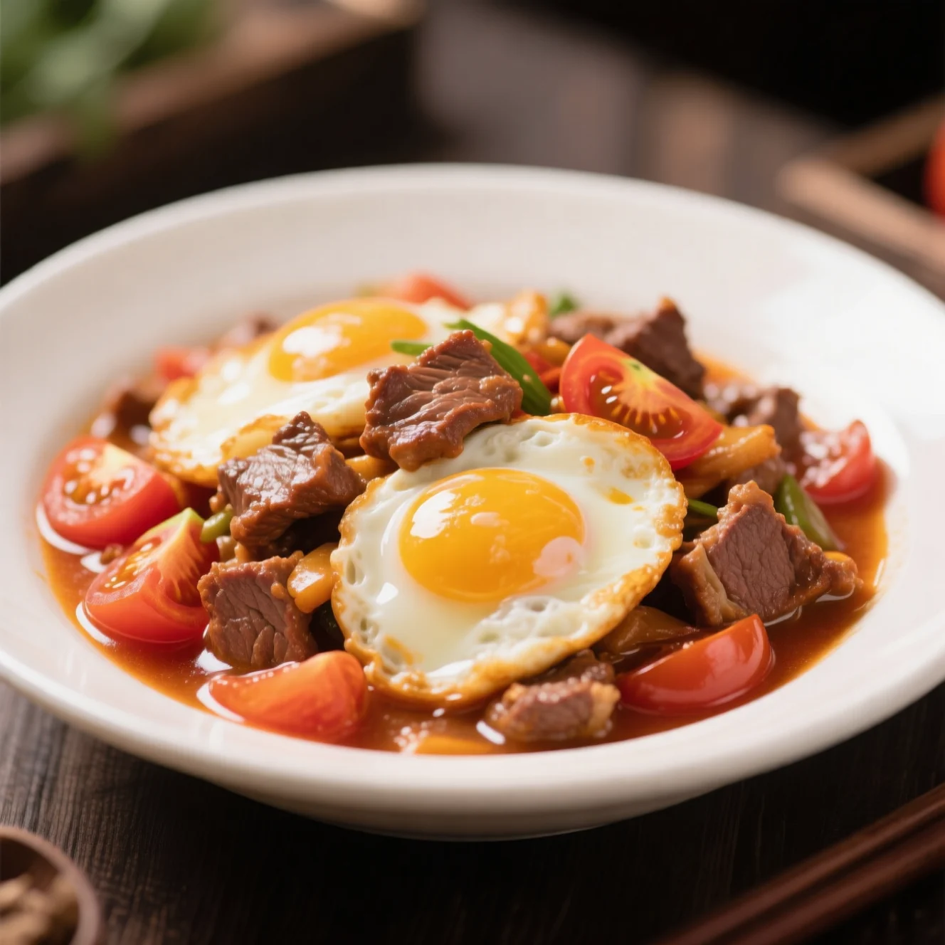 Bœuf aux Tomates et Œufs Soyeux