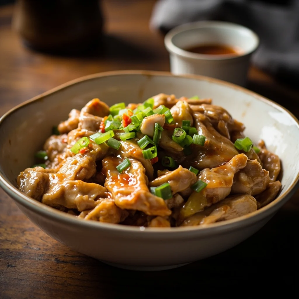 Retirer le poulet de la casserole et sécher. Trancher en portions, disposer sur un plat. Servir tiède ou à température ambiante avec la sauce de trempette au gingembre-oignon vert.