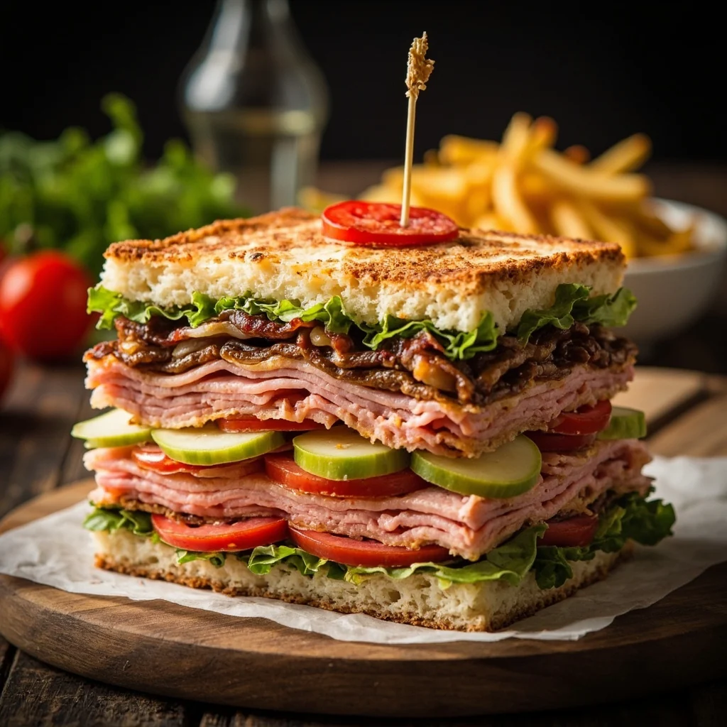 A stunning cold-layered sandwich that looks like a cake but delivers all the savory goodness of stacked deli ingredients. Perfect for gatherings, packed lunches, or a fun twist on everyday sandwiches.