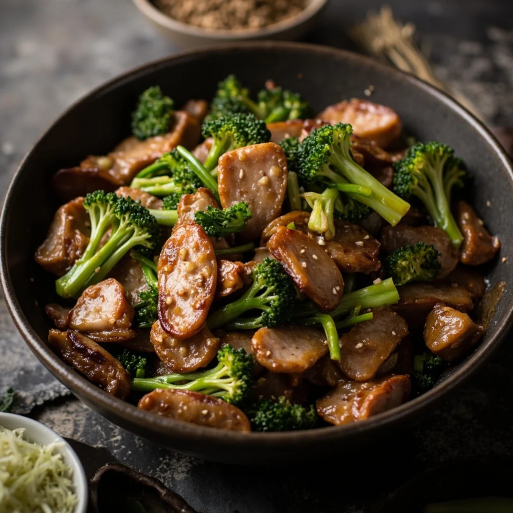 Tender strips of pork belly meet snappy gai lan in this fast, garlicky wok toss—ideal for busy evenings.